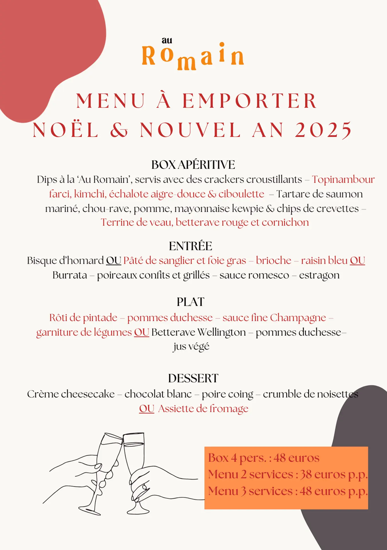 Afhalen kan bij ons in Au Romain, Heyd op 24/12 & 31/12.