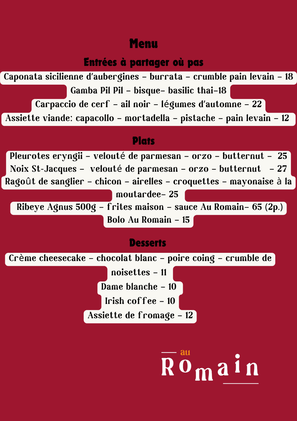 Onze menukaart vind je steeds terug op onze facebookpagina.